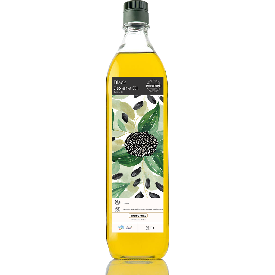 Black sesame oil is a culinary oil obtained by cold-pressing black sesame seeds, resulting in a dark, richly colored oil with a robust, nutty flavor. Commonly used in Asian cuisines, it adds depth and aroma to dishes. Black sesame oil is a nutritionally rich oil derived from black sesame seeds. It is a good source of healthy unsaturated fats, including omega-6 fatty acids, supporting heart health. Packed with antioxidants like sesamin and sesamol, it helps combat oxidative stress. The oil also provides essential vitamins and minerals, such as vitamin E, calcium, and zinc, contributing to overall well-being and bone health.